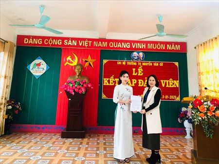 Chi bộ Trường TH Nguyễn Văn Cừ long trọng tổ chức Lễ kết nạp Đảng viên mới cho 02 quần chúng ưu tú: chúng Đỗ Thị Thu Hường, Nguyễn Thị Hằng Nga